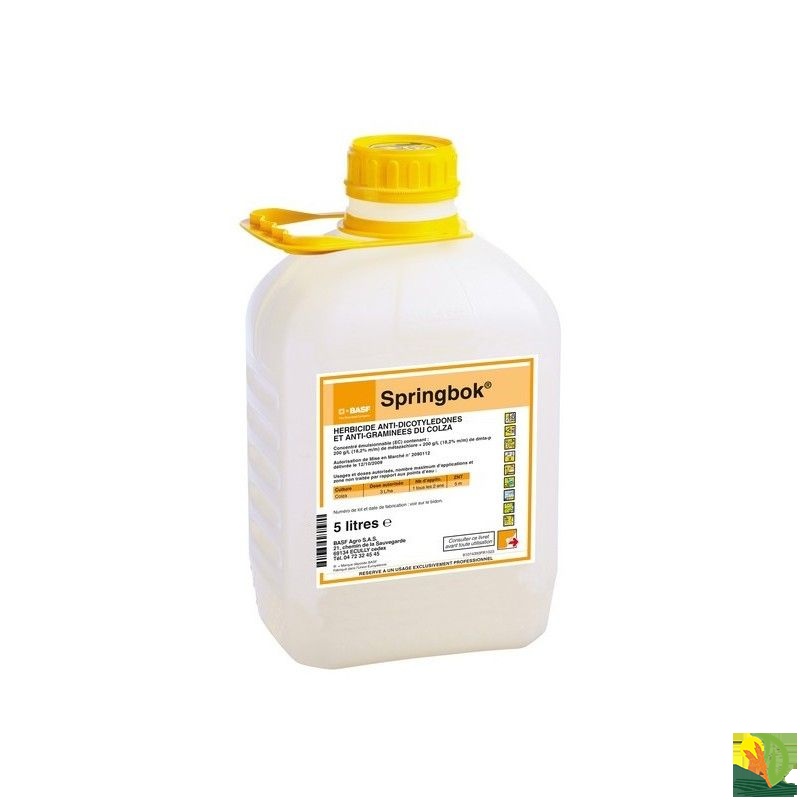 Anti-dicotylédones et anti-graminées à large champ d'action sur colza. SPRINGBOK apporte une solution aux problèmes posés par le développement des géraniums dans certaines régions. Il est souple d'utilisation et peut être positionné en post-semis prélevée ou en post-levée précoce.